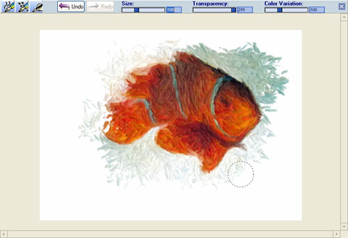 If you wish, now you can paint over a different background than white. It can be a solid color or any image: texture, photo or any other kind of digital image (jpg, tiff, bmp, etc). When you load an image to start a new drawing, the background will be asked, also you can change it in the middle of a work.